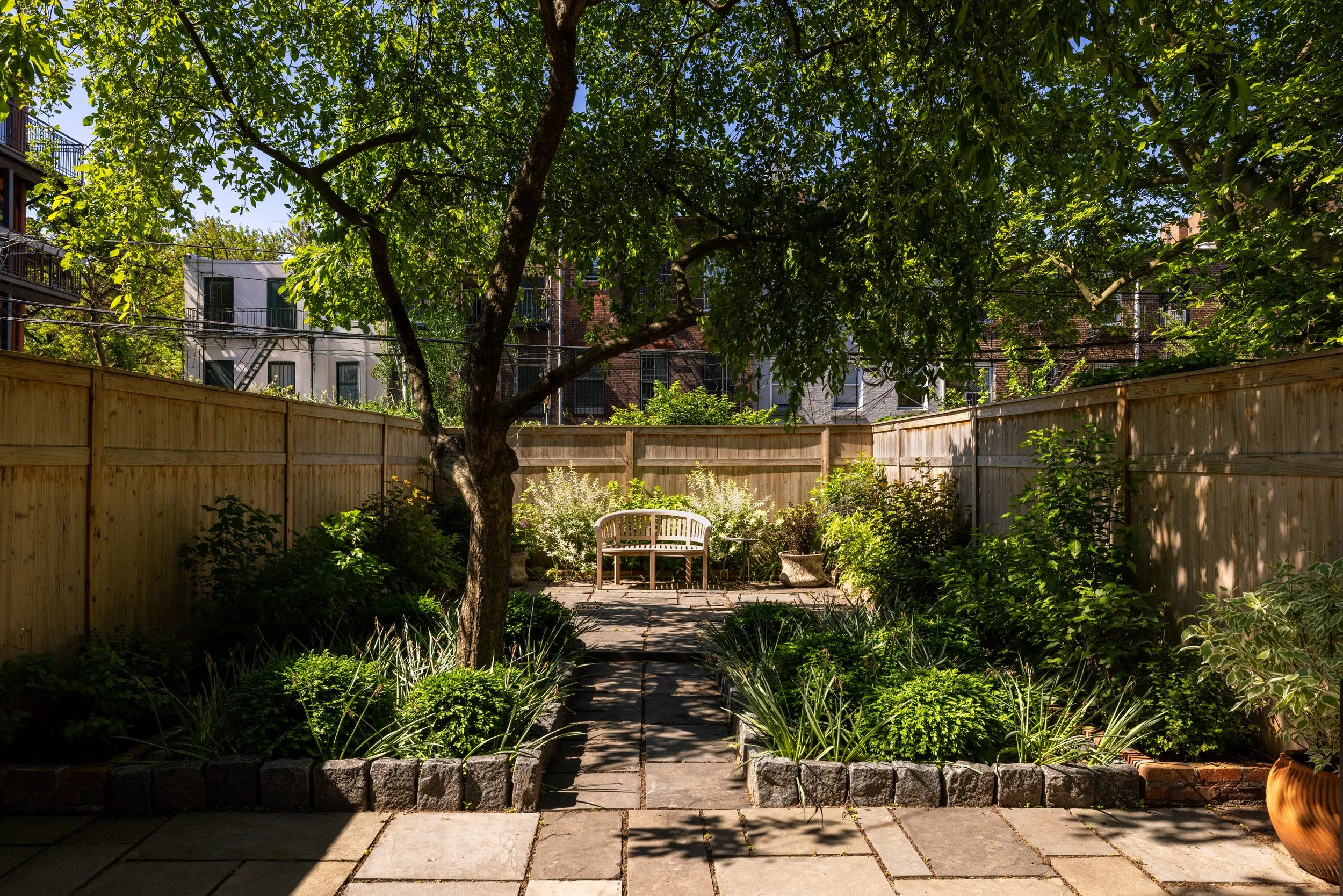 This full-scale townhouse renovation was taken down to the studs and comprehensively reimagined into a refined, light-filled family home. We designed every architectural detail—from bespoke millwork, doors, trim, cabinetry, and closets to a custom staircase, wine cellar, library, home bar, and two kitchens—ensuring a cohesive and timeless vision throughout. Our work extended beyond the architecture to include the hardscaping and exterior consultation, creating a seamless connection between the historic structure and its surroundings. The result is a home that quietly honors its 19th-century bones while embracing modern conveniences and a sense of understated luxury.