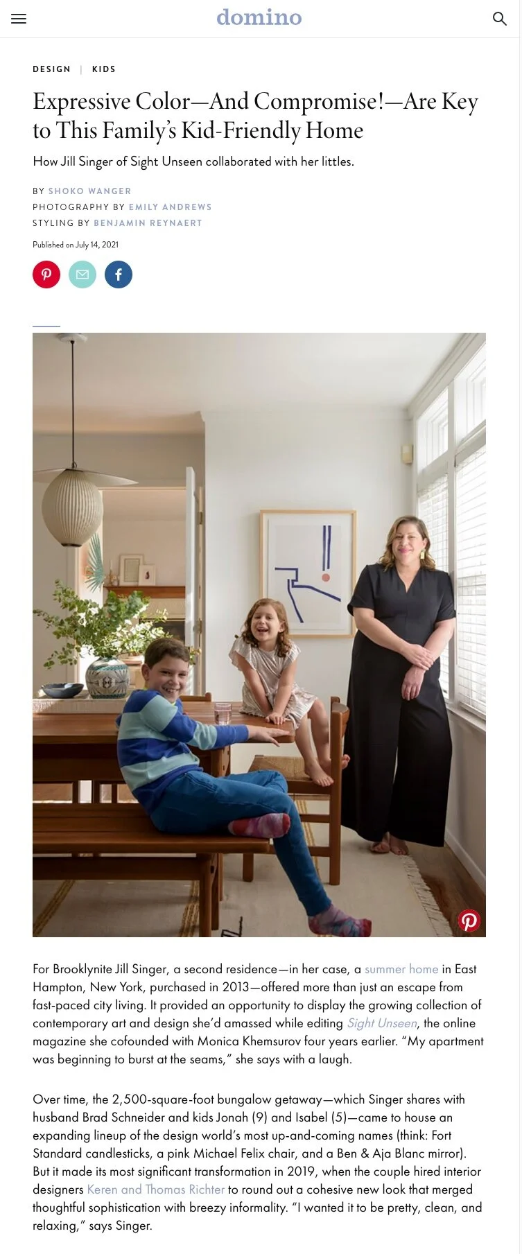 Domino Magazine: Expressive Color—And Compromise!—Are Key to This Family’s Kid-Friendly Home Project: Amagansett Beach House / link to article PRESSThomas RichterJuly 17, 2021amagansett, interior design, c, White Arrow, hamptons, Domino Magazine 0 Likes