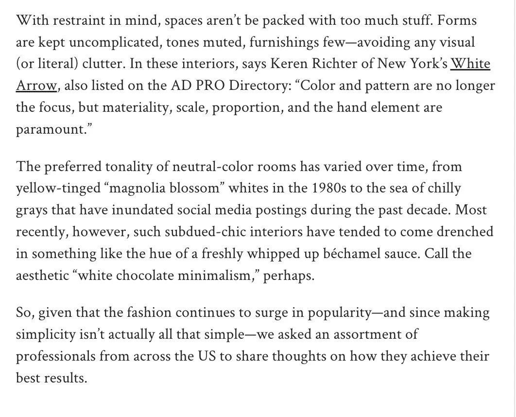 Architectural Digest: “White Chocolate Minimalism” Is the New Interior Trend to Watch PRESSThomas RichterFebruary 10, 2023press, photography, Architectural Digest, interior design, White Arrow, New York, montauk, marthas vineyard, e 0 Likes