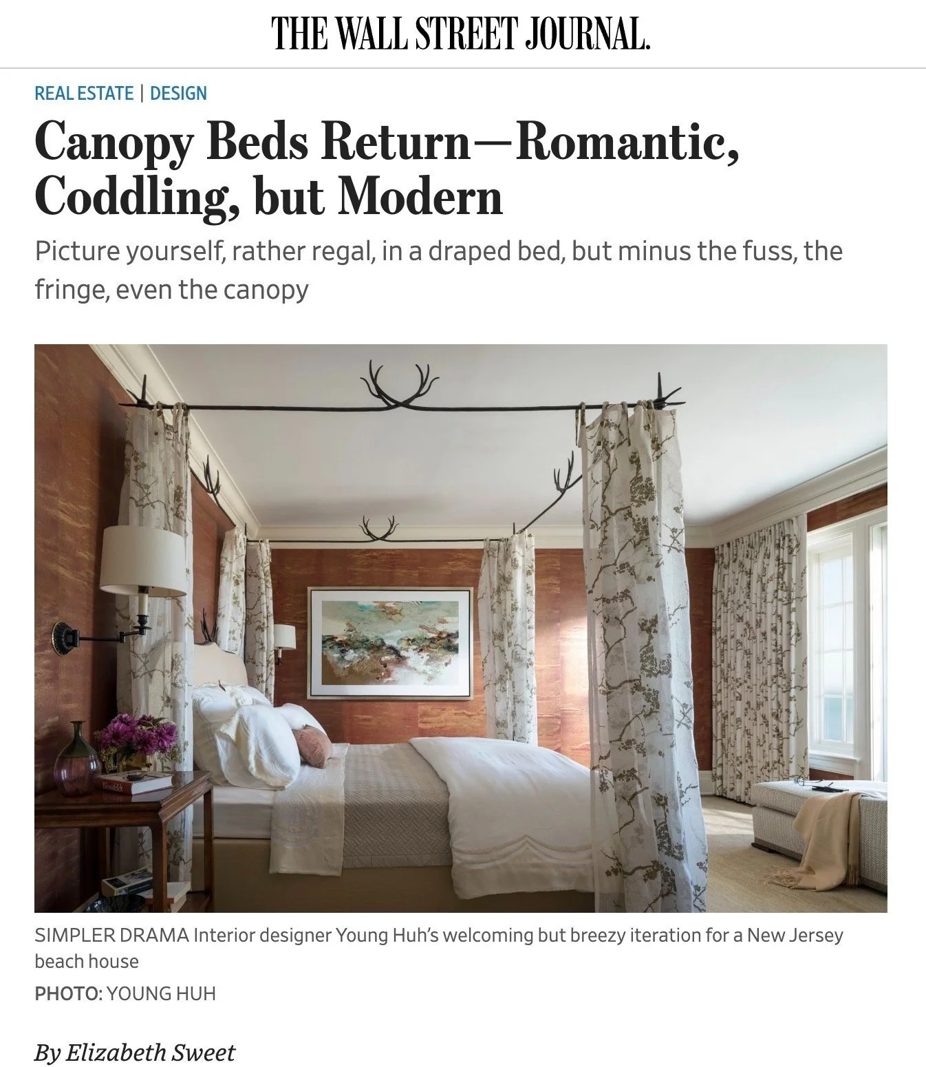 WSJ: Canopy Beds Return PRESSThomas RichterMarch 13, 2023press, interior design, The Wall Street Journal, Brooklyn, New York, White Arrow, e 0 Likes