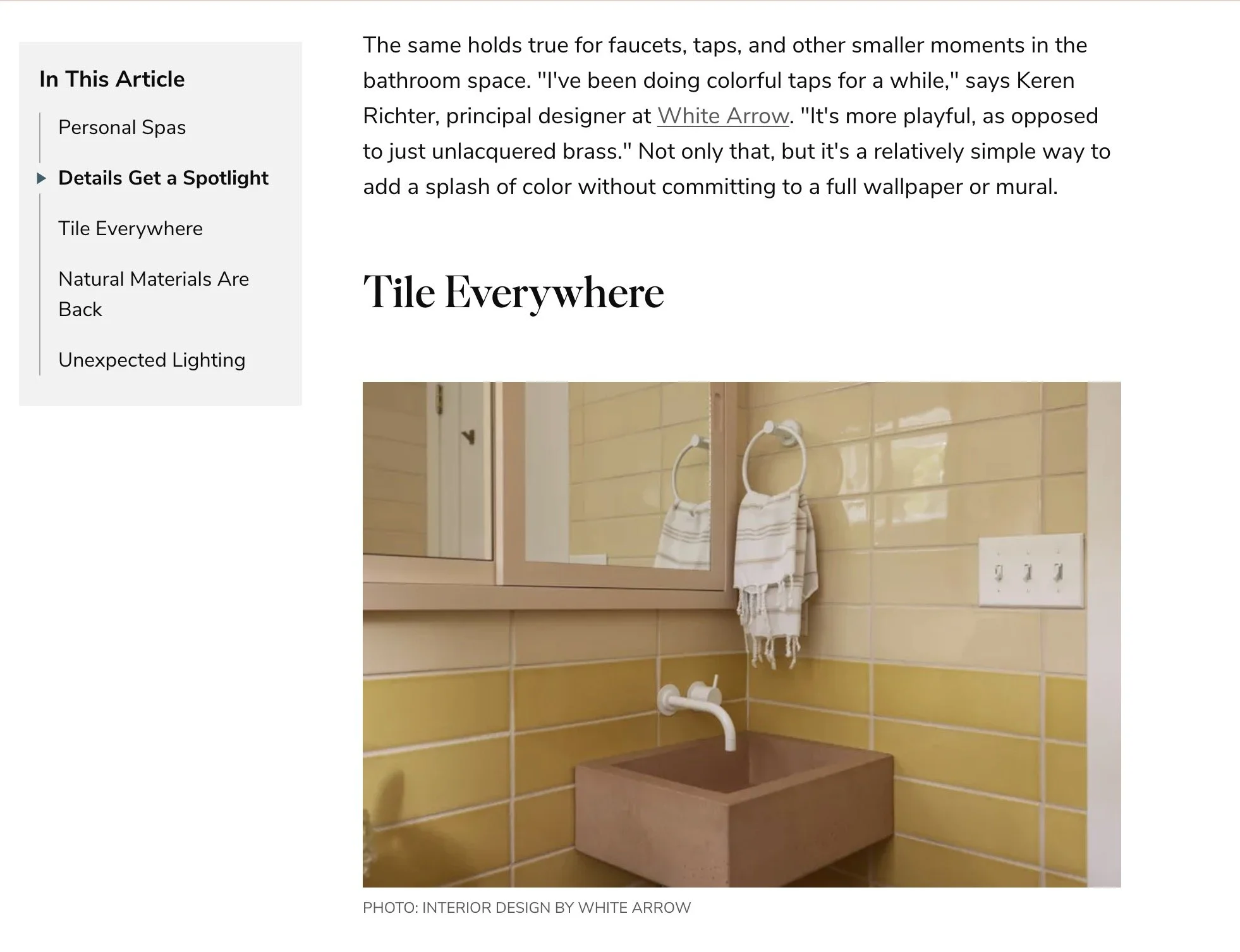 Martha Stewart: Designers Are Betting on These Fresh Bathroom Trends for 2025 Project: Amagansett / link to article PRESSThomas RichterNovember 18, 2024f, press, martha stewart, amagansett, hamptons, bath, White Arrow, photography, interior design 0 Likes