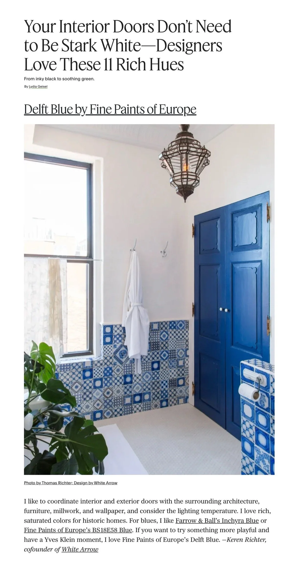 Domino Magazine: Your Interior Doors Don’t Need to Be Stark White link to article PRESSThomas RichterJuly 10, 2025Domino Magazine, Williamsburg, Brooklyn, New York, interior design, White Arrow, photography, f 0 Likes